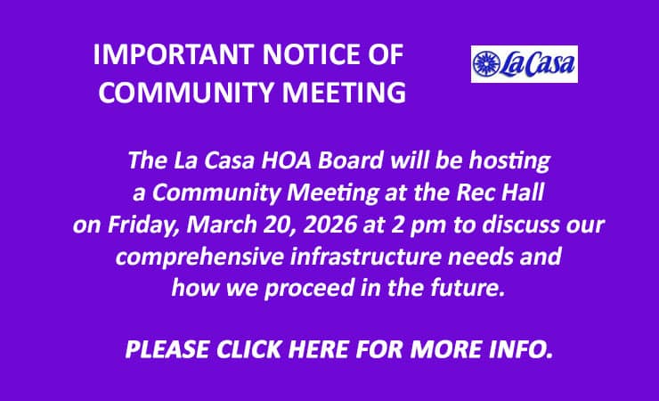 On Friday, March 20th, at 2:00 p.m. in the Rec Hall, the HOA Board will be hosting an informational meeting for all Shareholders. This will also be broadcast live on ZOOM at the regular HOA Board Meeting link.
